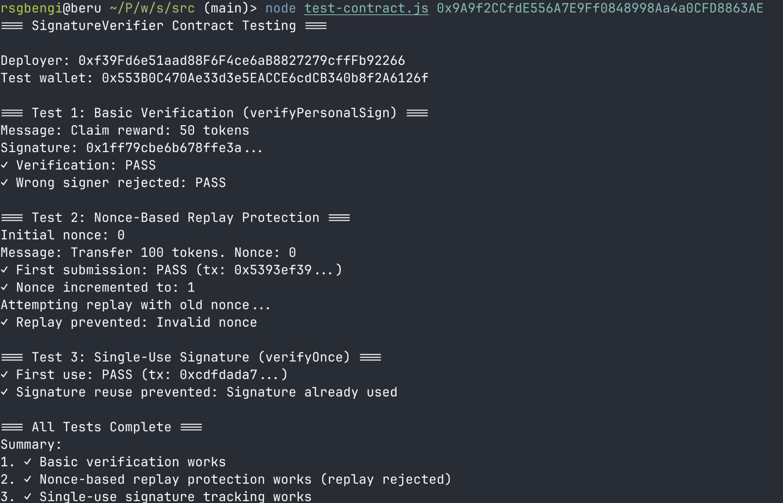 The Problem: Standard Ethereum wallets (MetaMask, Ledger, etc.) automatically add the EIP-191 prefix when signing messages. If your contract hashes the raw message without the prefix, signature verification will always fail. Users can’t authenticate, and the system is broken.