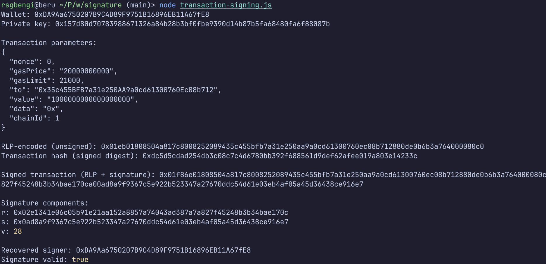 Let’s manually construct and sign a transaction to see RLP encoding in practice: